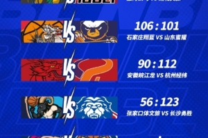 NBL常規(guī)賽第三輪今日戰(zhàn)罷,石家莊翔藍(lán)106-101險勝山東蜜獾,安徽皖江龍90-112不敵杭州經(jīng)緯,張家口體文旅56-123不敵長沙勇勝。
