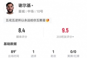 體育資訊12月27日訊 曼城在本輪英超對陣諾丁漢森林,謝爾基本場數據如下: