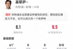 體育資訊12月28日訊 利物浦在本輪英超對陣狼隊,本賽季首次在聯(lián)賽首發(fā)的小基耶薩本場數(shù)據(jù)如下: