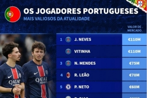 體育資訊12月28日訊 德國(guó)轉(zhuǎn)會(huì)市場(chǎng)列出了葡萄牙球員身價(jià)排名,若昂·內(nèi)維斯、維蒂尼亞1.1億歐居首。
