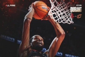 賽后,火箭官方曬圖,發(fā)布杜蘭特本場30+4+7的數(shù)據(jù)海報(bào)。