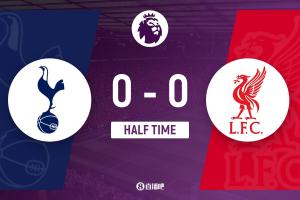 上半場(chǎng)傷停補(bǔ)時(shí)3分鐘,半場(chǎng)結(jié)束,利物浦暫0-0熱刺。