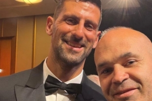 伊涅斯塔出席環(huán)足獎(jiǎng)?lì)C獎(jiǎng)典禮,并獲得生涯貢獻(xiàn)獎(jiǎng),他在社交媒體上曬出與德約科維奇、維蒂尼亞的合照。