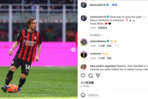 莫德里奇寫道:“以最好的方式結(jié)束這一年,大家圣誕快樂,F(xiàn)orza Milan ????”