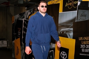 賽前,湖人官方社媒曬出球員入場照,東契奇戴墨鏡帥氣,老詹噸噸桶傍身。