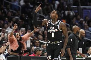 快船11勝2負(fù)期間:小卡場均32.7分6.9板2.6斷1帽 哈登24.8分7.8助