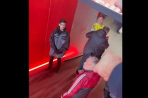 賽后離開(kāi)時(shí),有球迷大聲嘲諷、辱罵,大馬丁也在口頭回?fù)簦瑫r(shí)被人拉走了。