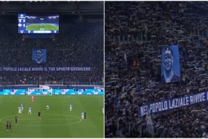 球迷們拉出的橫幅寫道:“拉齊奧人們的心中,你戰(zhàn)士般的靈魂永存?!?/p>